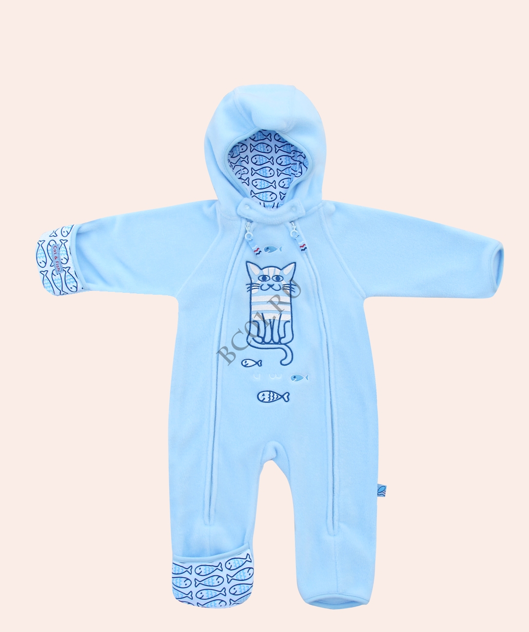 Совместный комбинезон из мягкого флиса, ручки и ножки закрываются пришивными манжетами.
